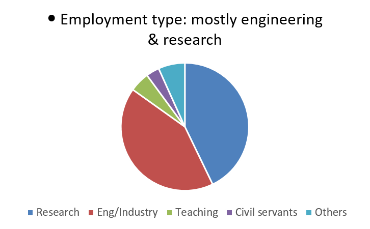 Our alumni work in Scientific and Technology sectors, 67% of them remain in Europe